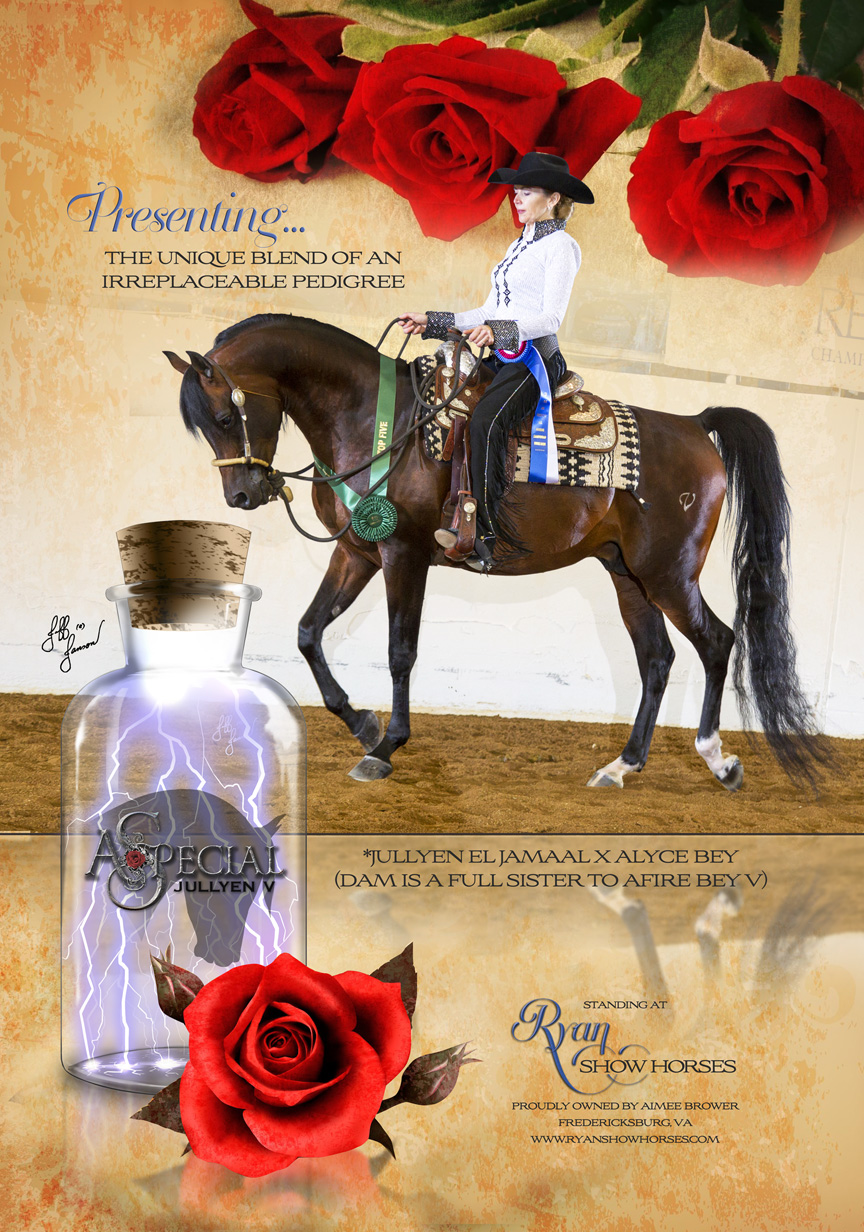 ASJv is debonair. He conducts himself in a manner befitting a well-mannered stallion at all times. He carries his rider - professional or amateur - as if they are a member of Royalty. His athleticism is boundless and seemingly without limitations. He behaves in a chivalrous manner whether under saddle or in hand.